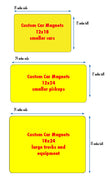 The most common sizes are 18x12 (for cars) and 18x24 for larger trucks. Even larger sizes are available upon request.